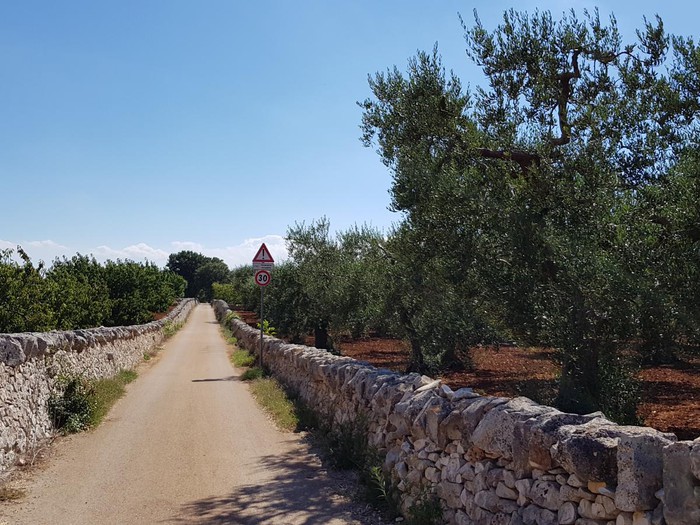 Route on a secondary road immersed in the Apulian countryside, perfect for a bike trip among dry stone walls, trulli, and panoramic views of the coast.