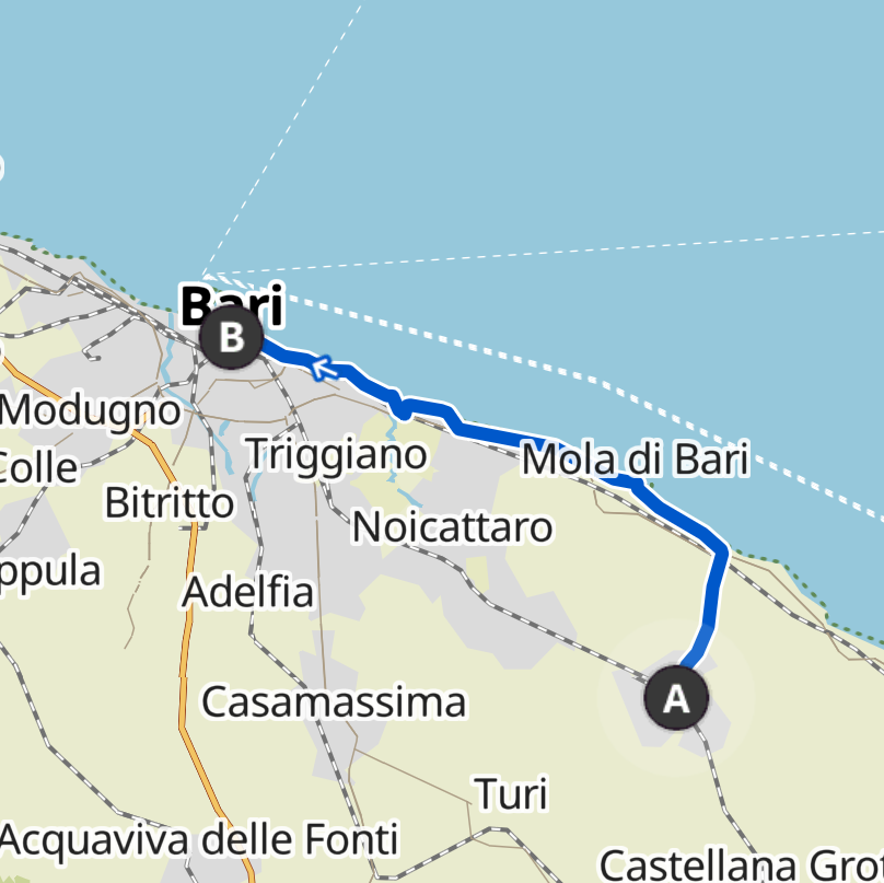 Un itinerario per ciclisti esperti, tra piccoli centri rurali, campagne pugliesi e il cuore della città di Bari. Ideale per scoprire il territorio con lentezza e profondità.