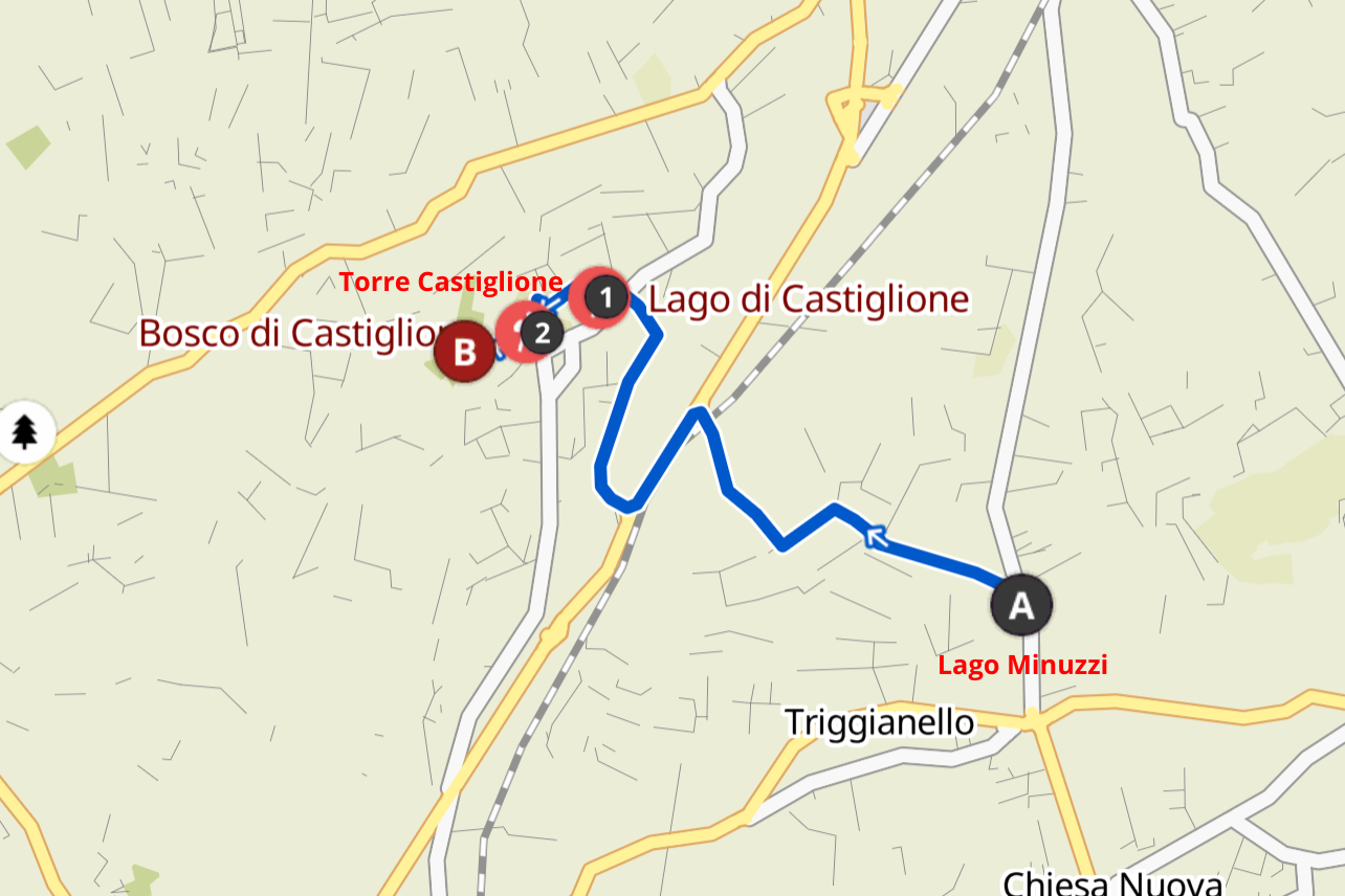 Nota: la seconda parte del percorso (Torre e Lago di Castiglione) è consigliata per chi dispone di un mezzo proprio.
